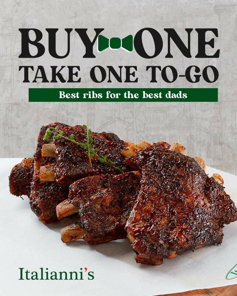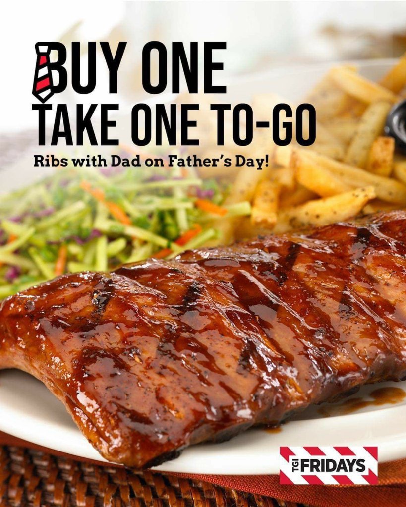 At TGIFridays, Italianni’s and Denny’s, place an order of their bestselling ribs and take home another one for FREE at the following select branches: