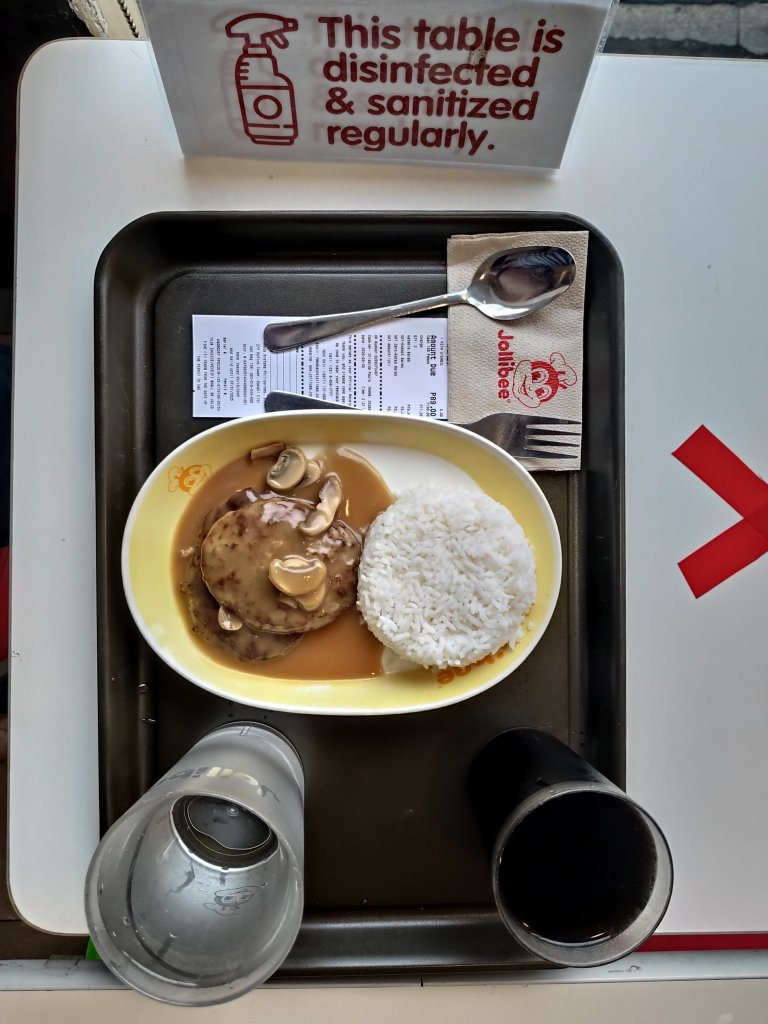 When I went back to Jollibee, there were available dine-in slots so I ordered a double patty burger steak with Sarsi. I normally just order single patty, no drinks but I probably felt more tired and hungry than usual. Burger steak is my go-to item whenever I go to Jollibee.